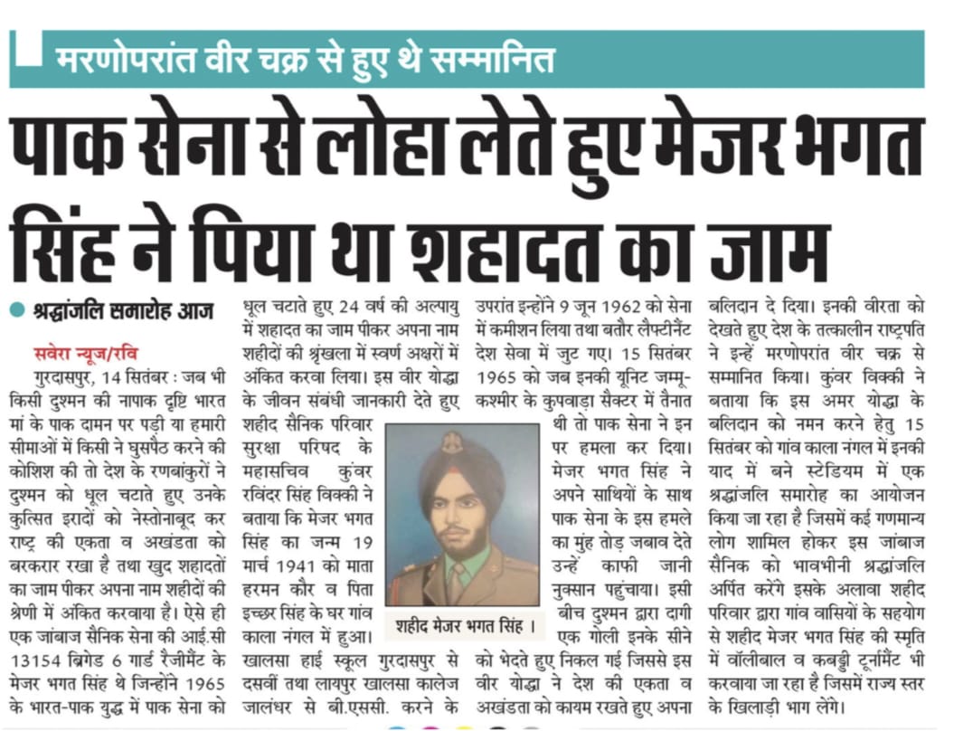 Major Bhagat Singh hailed from Batala tehsil of Gurdaspur district in Punjab and was born on 13 March 1941. Son of Shri Ishar Singh and Smt Harnam Kaur, he did his schooling at Khalsa High School Gurdaspur and later went on to do his graduation in science (BSc) at Lyallpur Khalsa College Jalandhar. Subsequently, he got selected to join the Army and went to the prestigious IMA Dehradun for training. He passed out of the Training Academy as 2nd Lieutenant on 10 June 1962 at the age of 21 years. He was commissioned into 6 Guards of the Brigade of Guards, an infantry Regiment known for its gallant soldiers and numerous battle exploits. By the year 1965, he had put in around three years of service and had been promoted to the rank of Major.