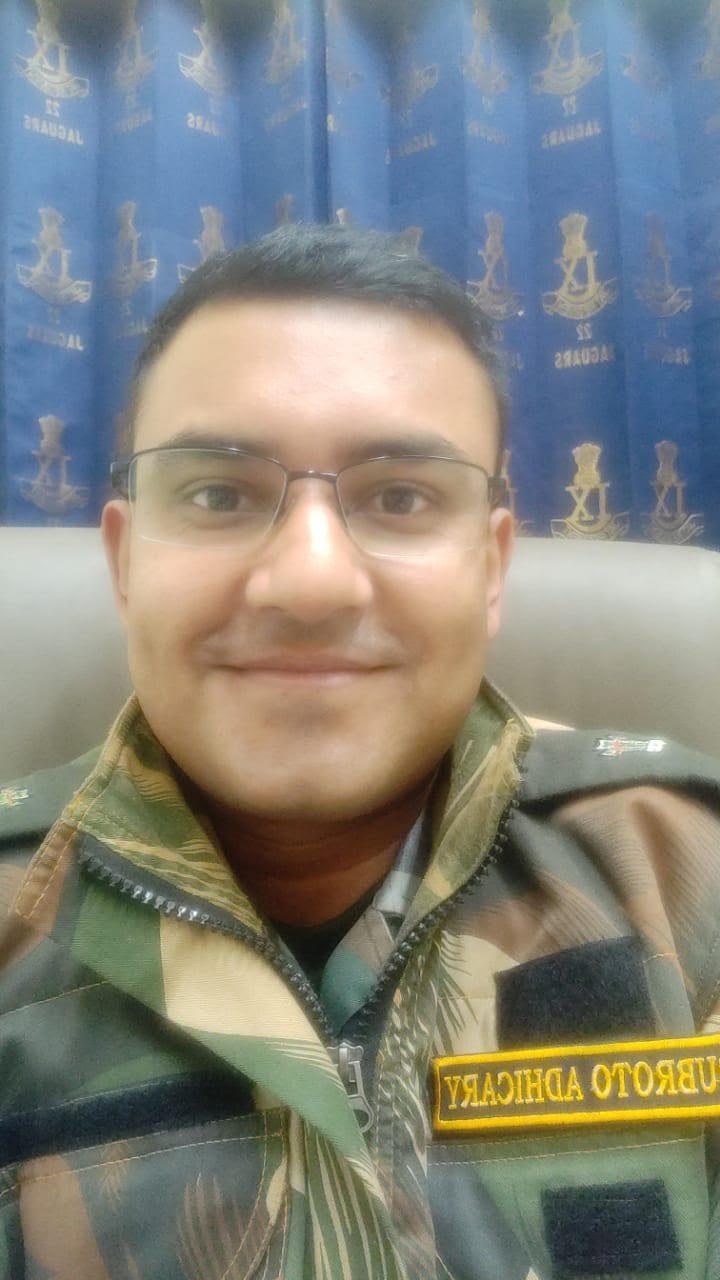 Major Subroto Adhicary hailed from Allahabad (Prayagraj) in Uttar Pradesh. He completed his schooling at St. Joseph College, Allahabad, and thereafter got selected to join the prestigious NDA Khadakwasla in 2005. After passing out of the NDA, he went to IMA Dehradun for further training in 2009. He passed out of the IMA on 12th December 2009 as a Lieutenant at the age of 21 years. He was commissioned into the 12 Jat Battalion of the famed Jat Regiment of the Indian Army and was always very proud of his regiment.